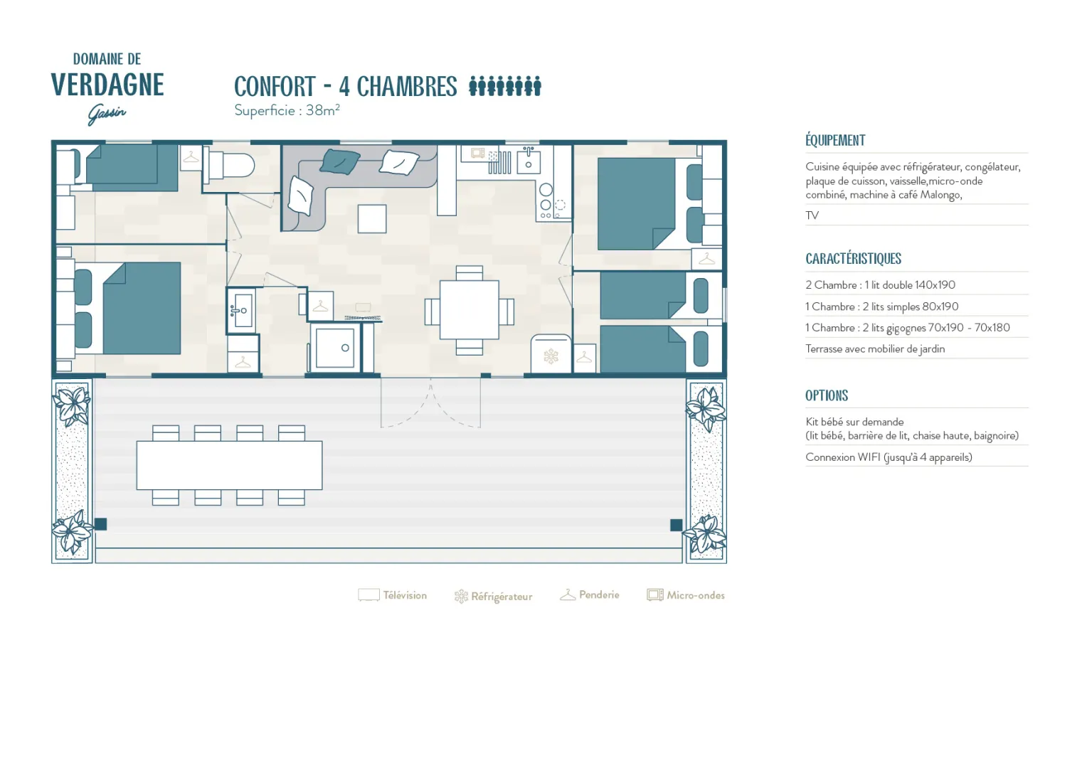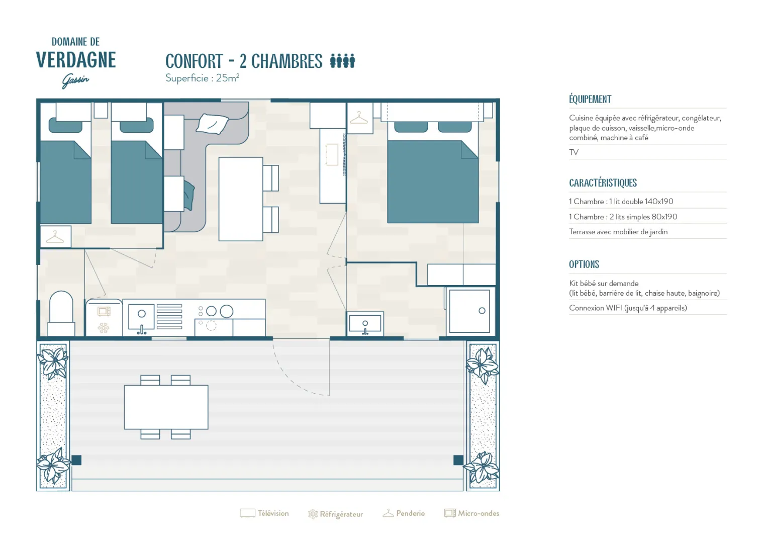 Ontdek onze comfortabele accommodatie, verscholen in een mediterraan bos, in de schaduw van pijnbomen, die is ontworpen om aan al je wensen te voldoen. Of je nu reist met je gezin, met vrienden of met z'n tweeën, onze ruime, moderne accommodatie, variërend van 1 tot 4 slaapkamers, is van alle gemakken voorzien om je verblijf zowel gemakkelijk als comfortabel te maken.